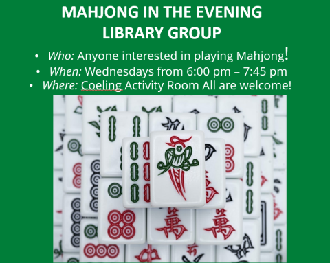 Mahjong is a tile-based game that is similar to poker and rummy, and involves matching tiles to form sets and pairs. This library group of experienced players meets on Tuesdays and Thursdays from 12 - 3pm.